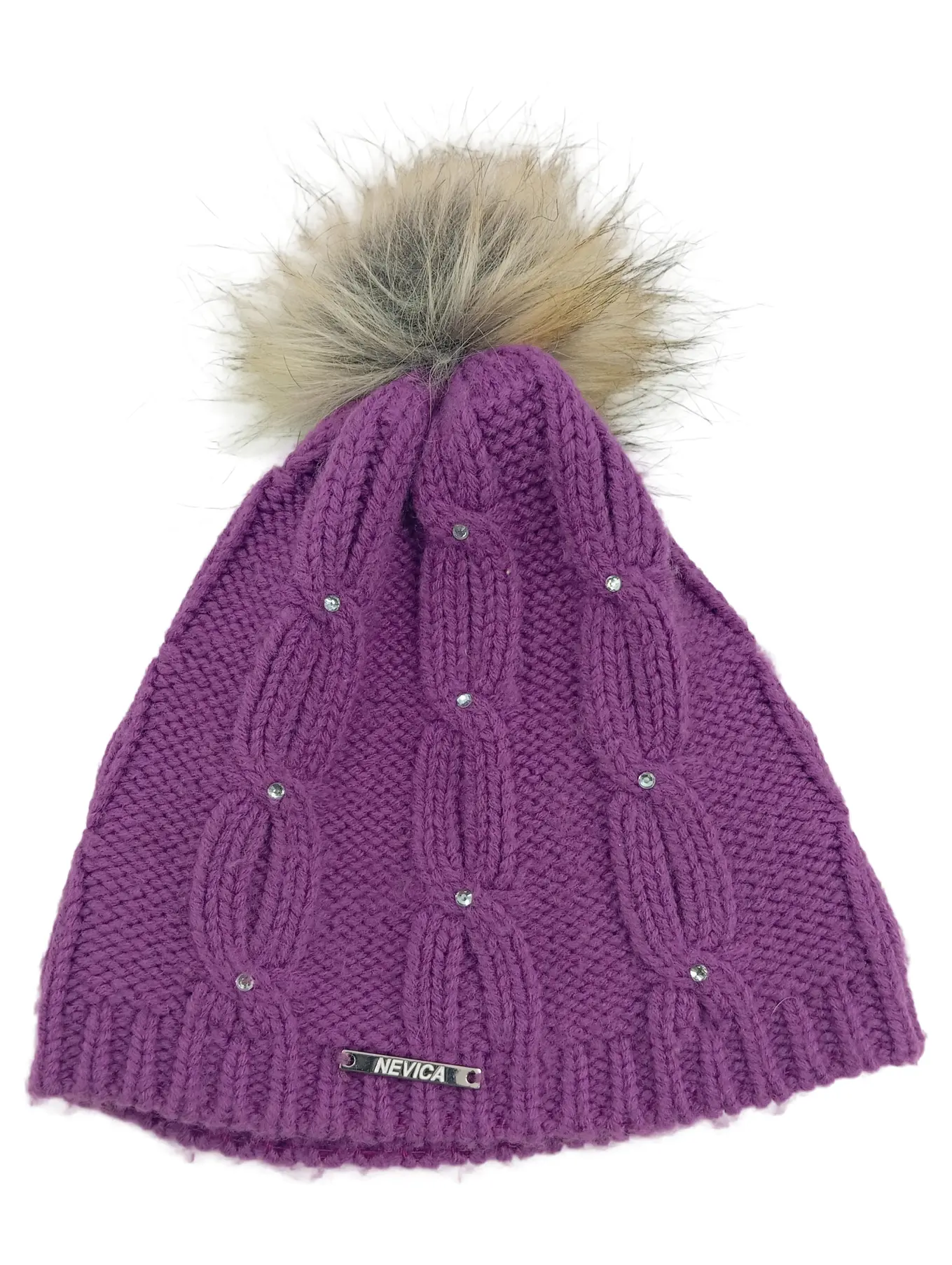 NEVICA Mütze Damen Lila Zopfstrick Bommel Strass Wintermütze Beanie