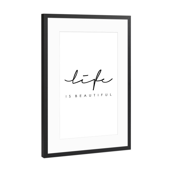 Poster mit Rahmen Schwarz (Metallic) "*Life Is Beautiful*" artboxONE - Typografie,Menschen