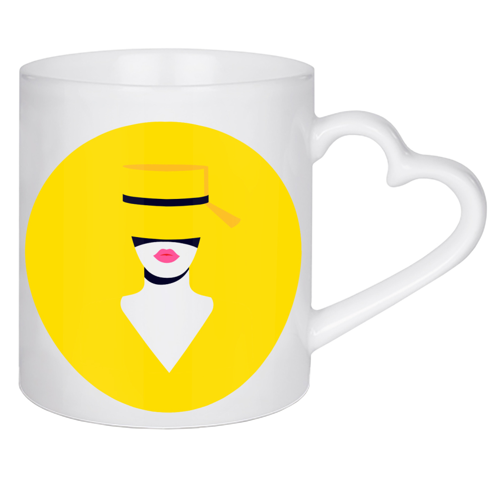 Herztasse "Woman in yellow hat" artboxONE - Fashion - Beauty,Lady,Fashion,Style,Lovely,Woman,Hat,Lips,Face,Schönheit,Frau,Mode,Hut,Lippen,Bedeckt,In