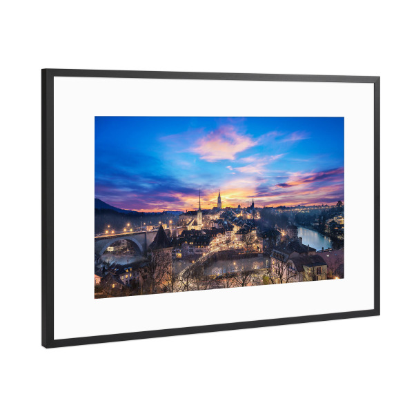 Poster mit Rahmen Schwarz (Metallic) "Beautiful Bern city" artboxONE - Städte