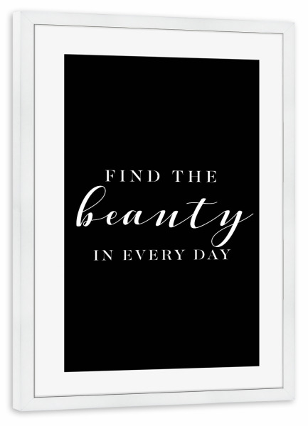 Poster mit Rahmen weiß "Find the beauty in every day" artboxONE - Typografie,Schwarzweiß