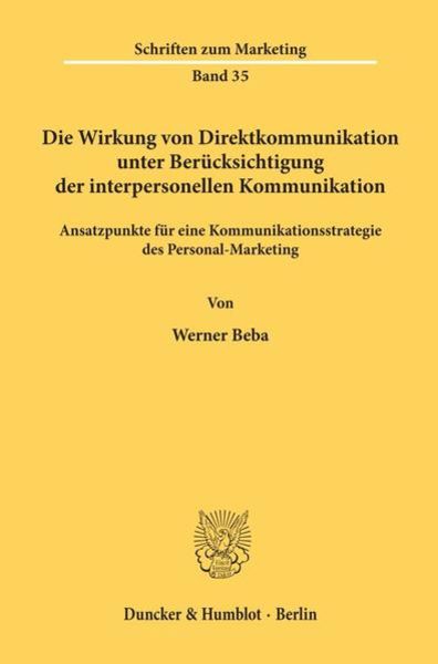 Die Wirkung von Direktkommunikation unter Berücksichtigung der interpersonellen Kommunikation., Taschenbuch von Werner Beba, Duncker & Humblot,