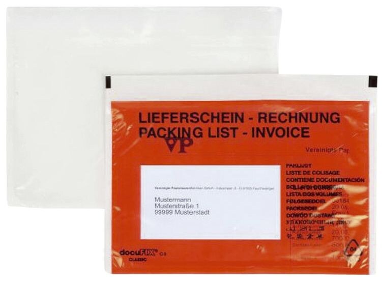 100 x Lieferscheintaschen C6 Transparent Dokumententaschen Begleitpapiertaschen Lieferschein