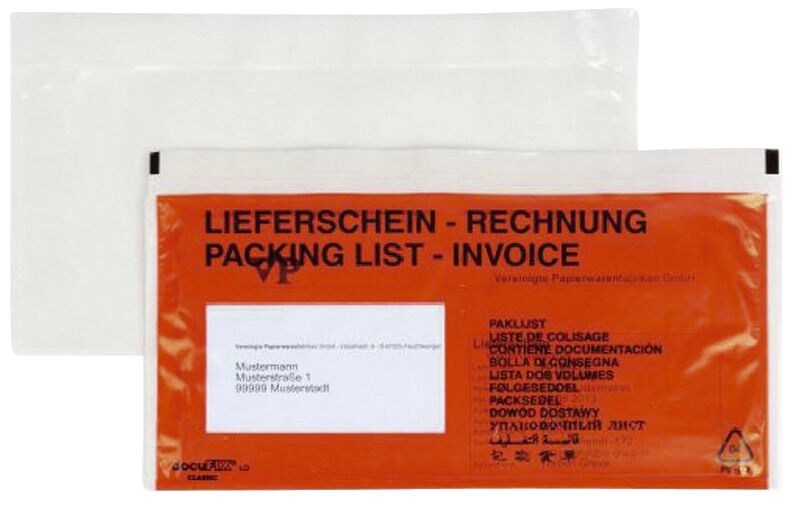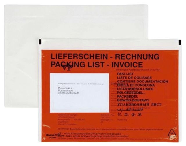 KK Verpackungen 250 C6 Begleitpapiertaschen bedruckt Lieferscheintaschen Lieferscheinhüllen NEU