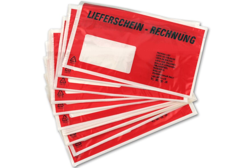 500 rote Begleitpapiertaschen Lieferscheintaschen DIN lang Lieferscheinhüllen