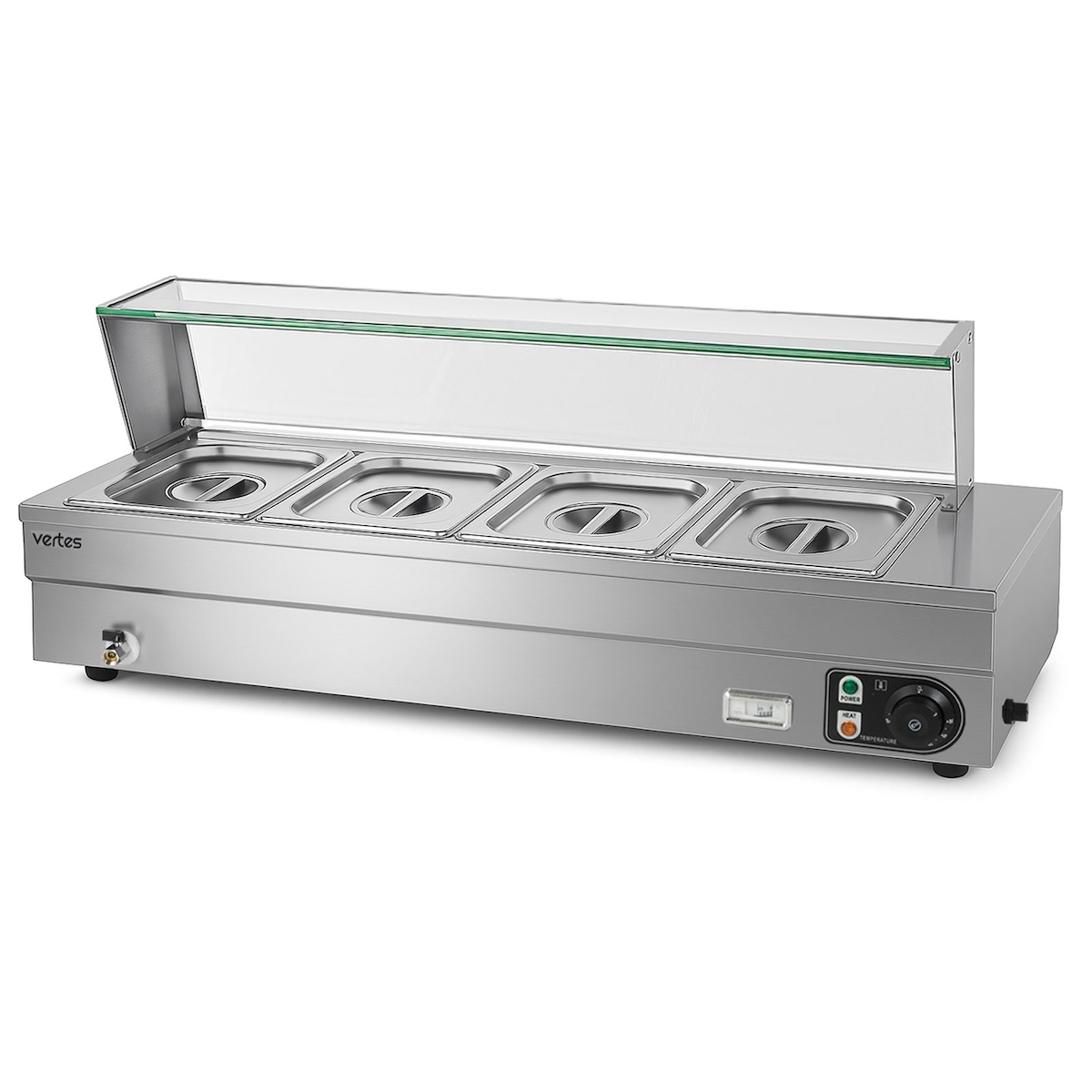 VERTES Speisenwärmer Buffetwärmer Für Speisen Elektrisch 1500W aus Edelstahl (Inkl 4x 1/2 GN Behälter mit Deckel, 10L, 30-85°C)