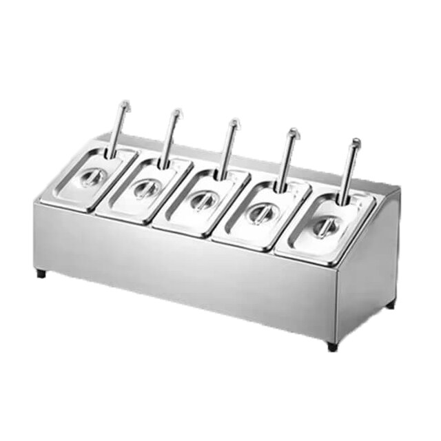 Metallhalterung für 5 GN 1/9 Behälter und 5 Löffel mit Deckel
