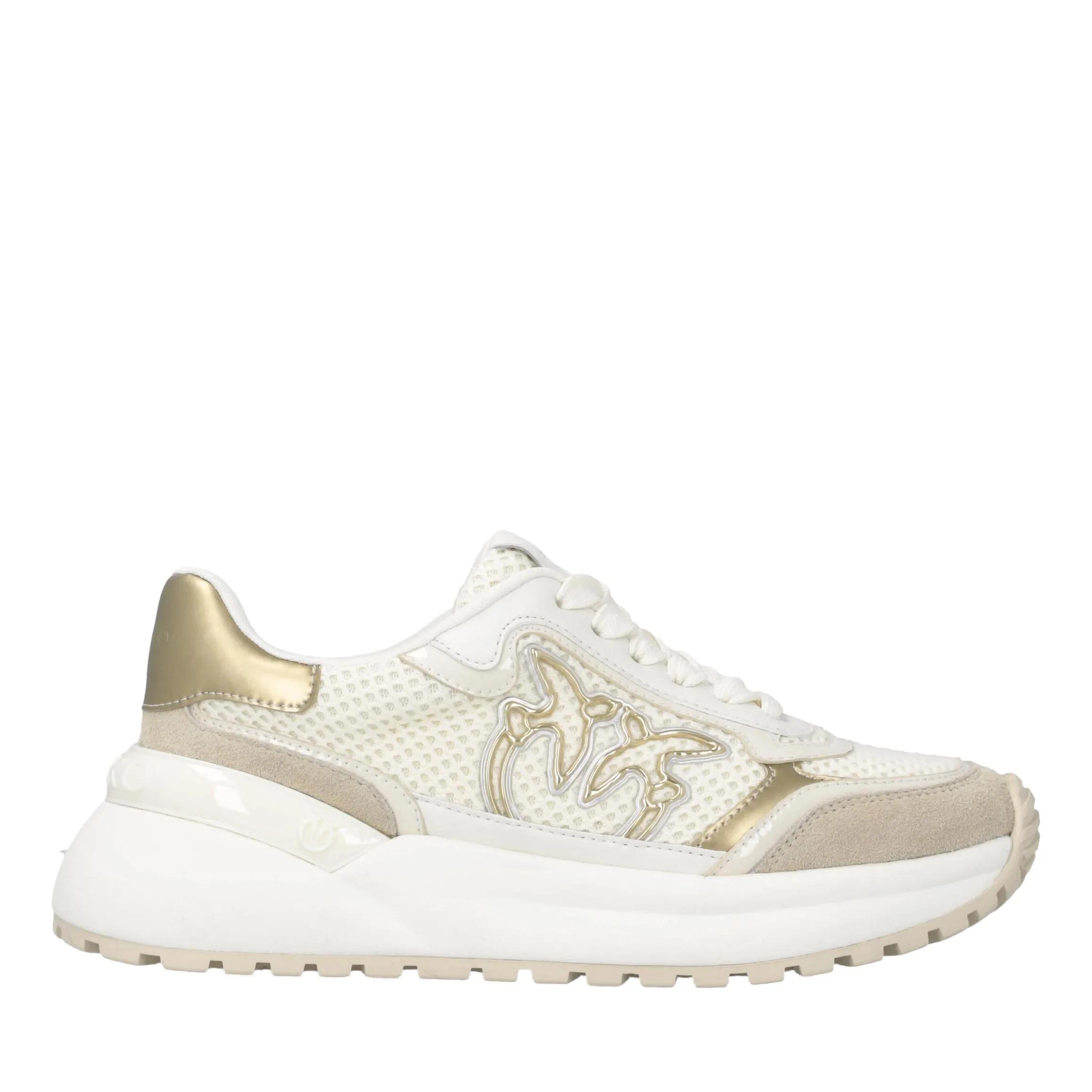 Pinko Low-Top Sneaker - Gem 11 - Sneaker Mirror Leather/Mesh/Cow Suede Mil - Gr. 38 (EU) - in Beige - für Damen - aus Textil & Gummi & Leder & Textil