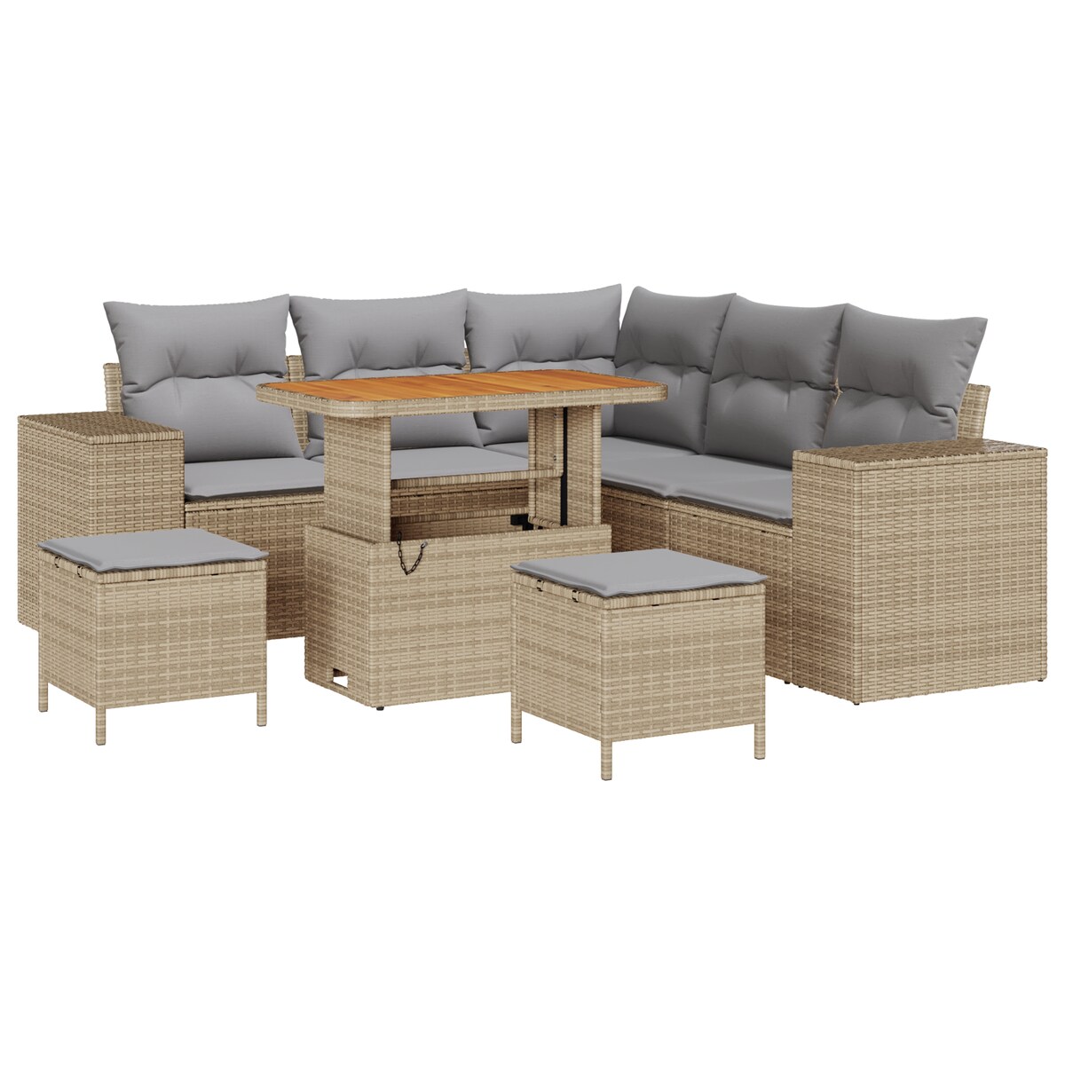 Garten-Sofa-Set mit Speicher 7 pcs Beige Poly Rattan