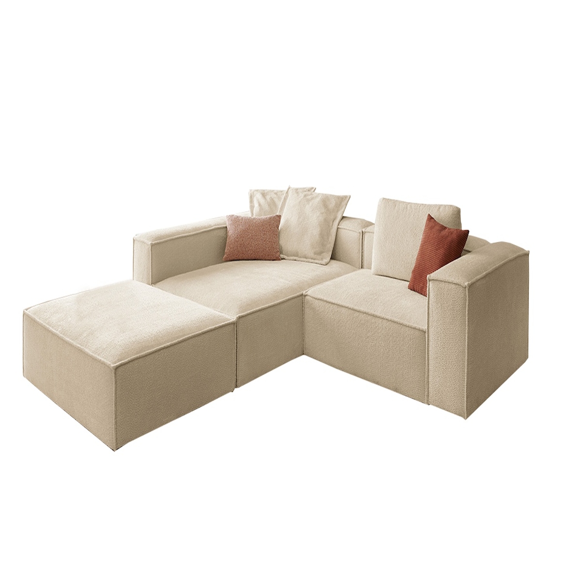 Merax Modulares 3er-Set Cord-Sofa: Sessel, 2-Sitzer & Hocker mit Tasche, Beige