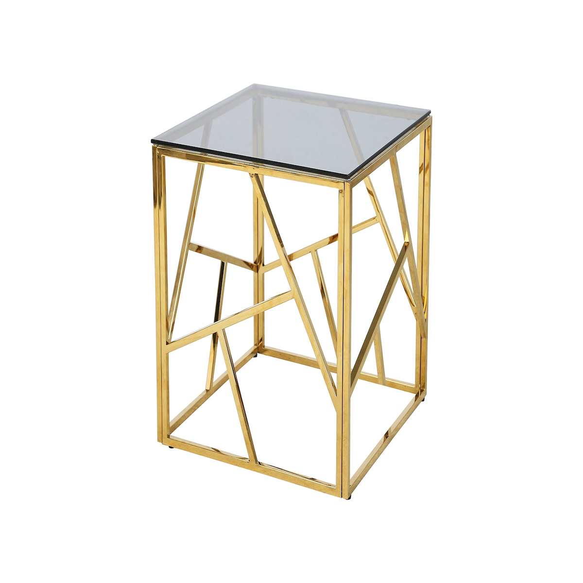 SalesFever Beistelltisch 55x55 cm | Sicherheitsglasplatte grau 8 mm | Gestell goldfarben, rostfreier Edelstahl | Grau / Gold
