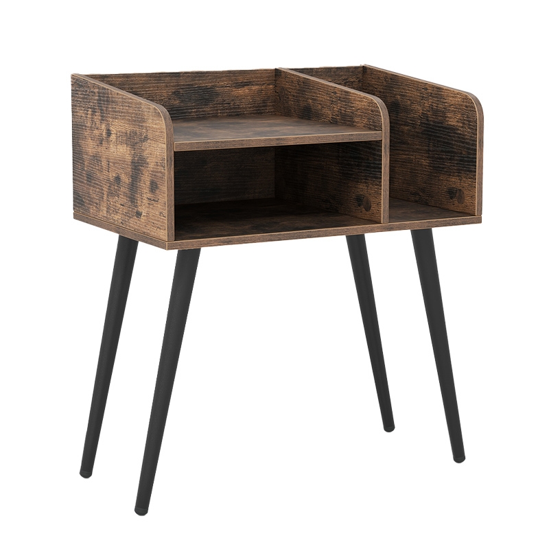 Tribesigns Beistelltisch, Nachttisch mit 3 Ablagefächern, Holzbeistelltisch mit schwarzem Metallrahmen, Industriell kleiner Sofa Beistelltisch