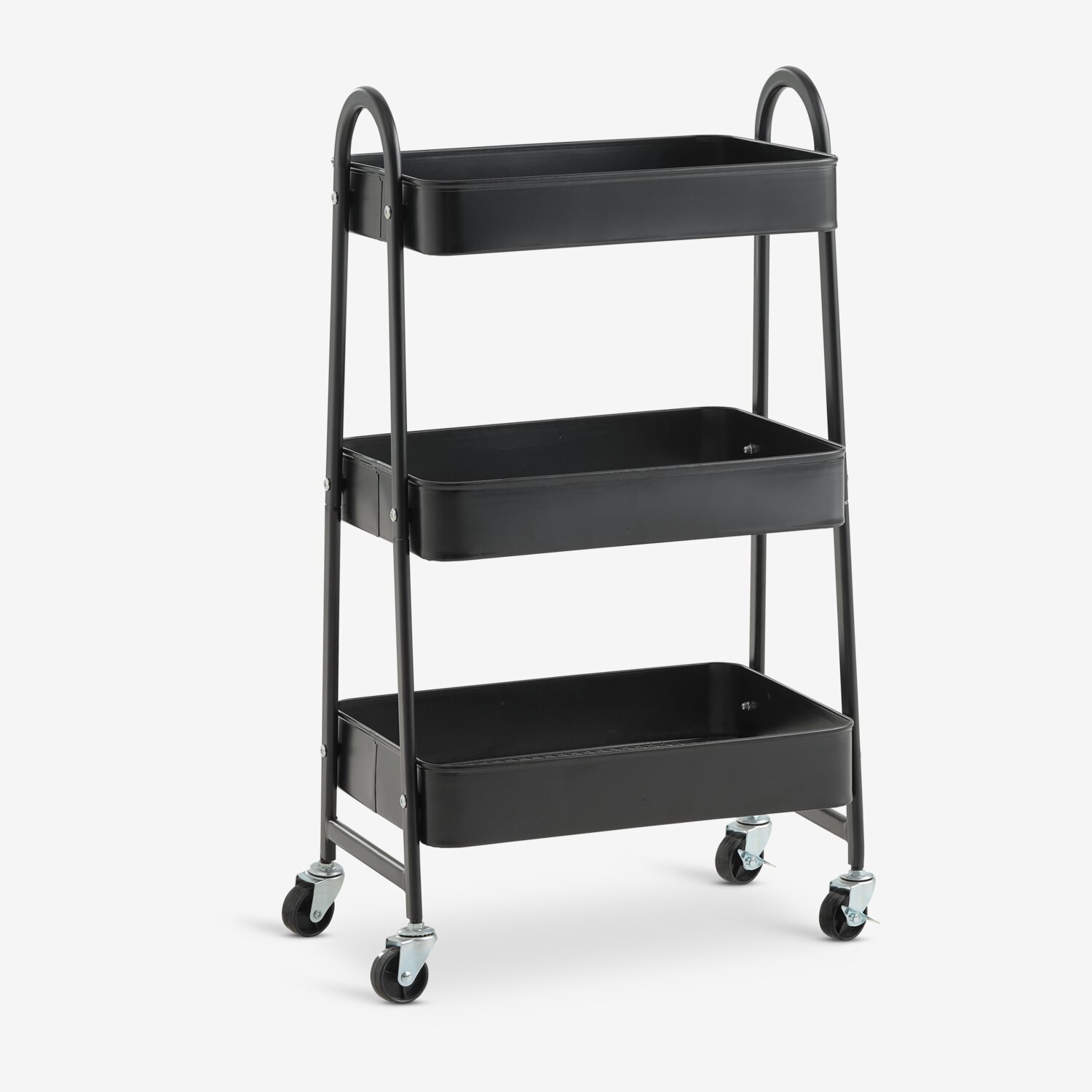 Beistellwagen mit R?dern. 3 K?rbe fš¹r Transport und Aufbewahrung. Kš¹chenwagen. 40.8L x 33.5B x 60.5H cm. Schwarz