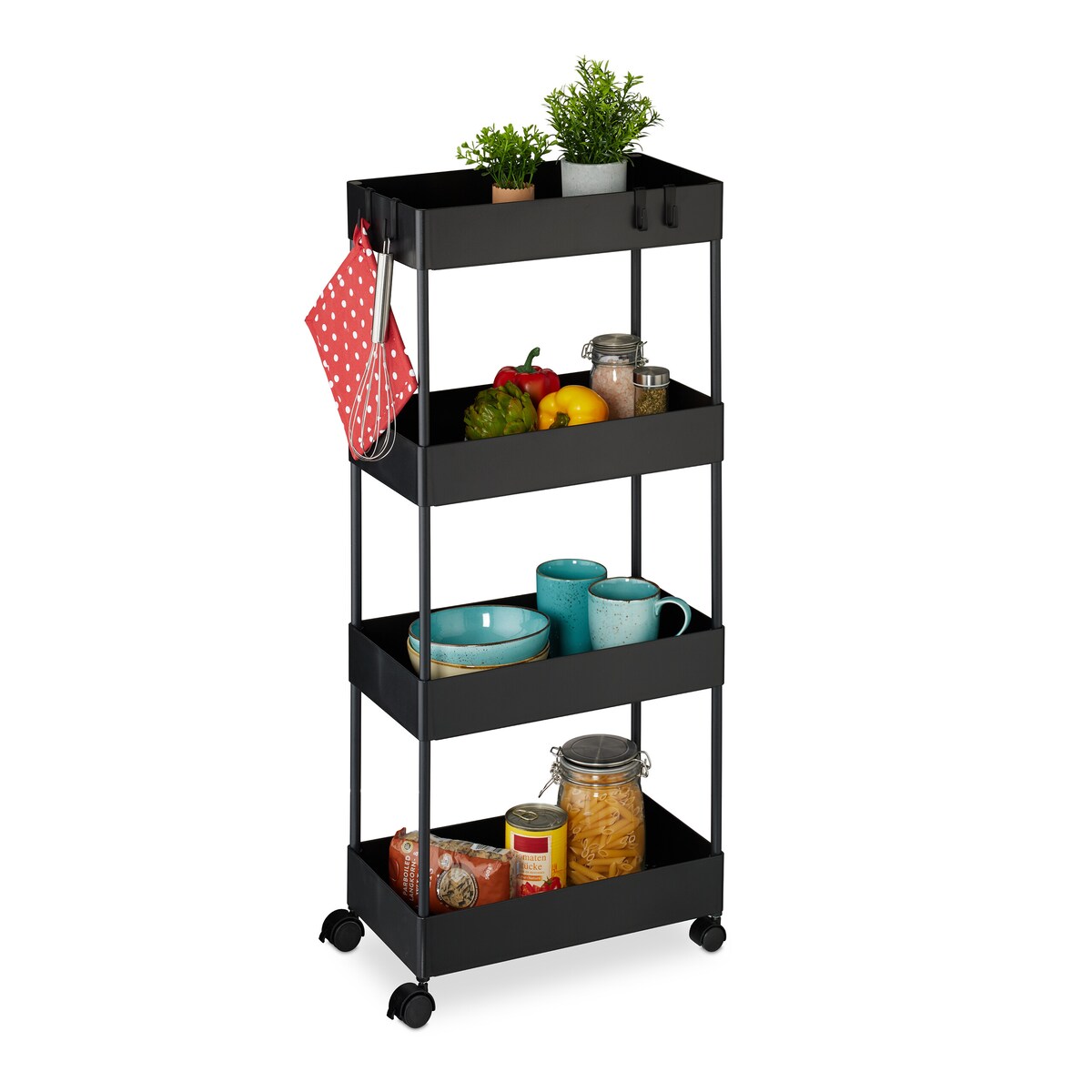 Relaxdays Rollwagen, 4 Ebenen, H x B xT: 93 x 40 x 22 cm, 4 Rollen, Badezimmer, Küche, schmaler Beistellwagen, schwarz