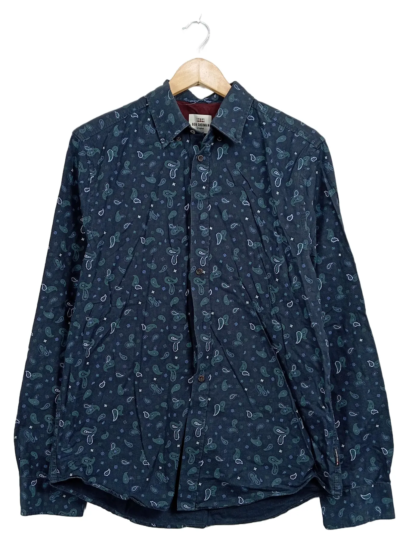BEN SHERMAN Hemd Herren M Paisley Muster Langarm Blau Baumwolle Casual