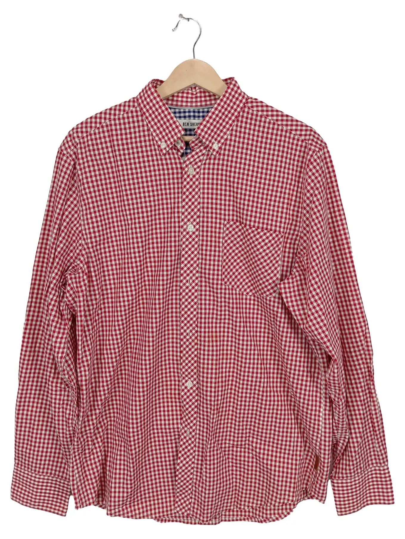 BEN SHERMAN Hemd Herren XL Langarm Kariert Rot Weiß Baumwolle Button-Down