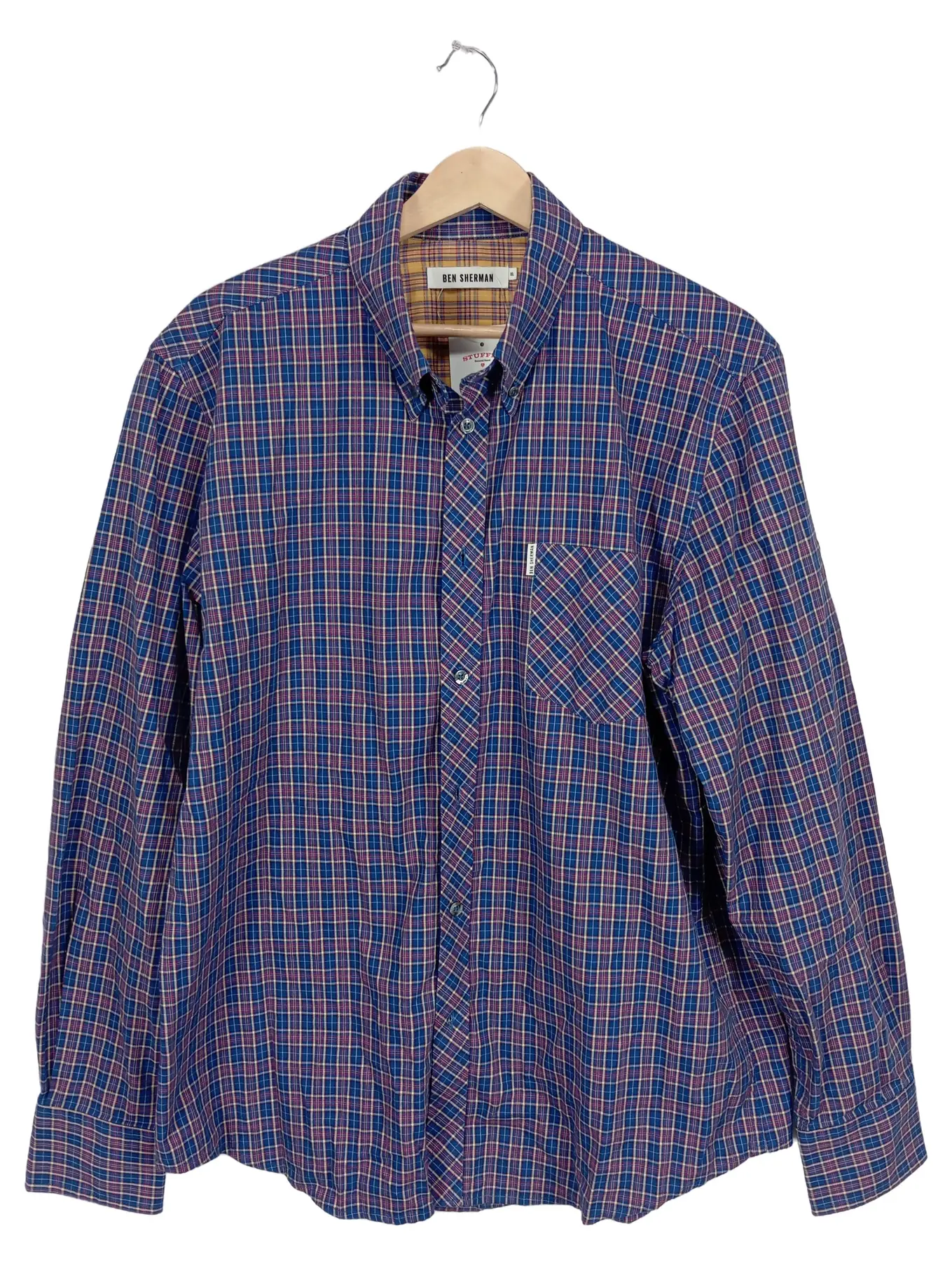 BEN SHERMAN Hemd Herren XL Kariert Blau Langarm Baumwolle Freizeithemd