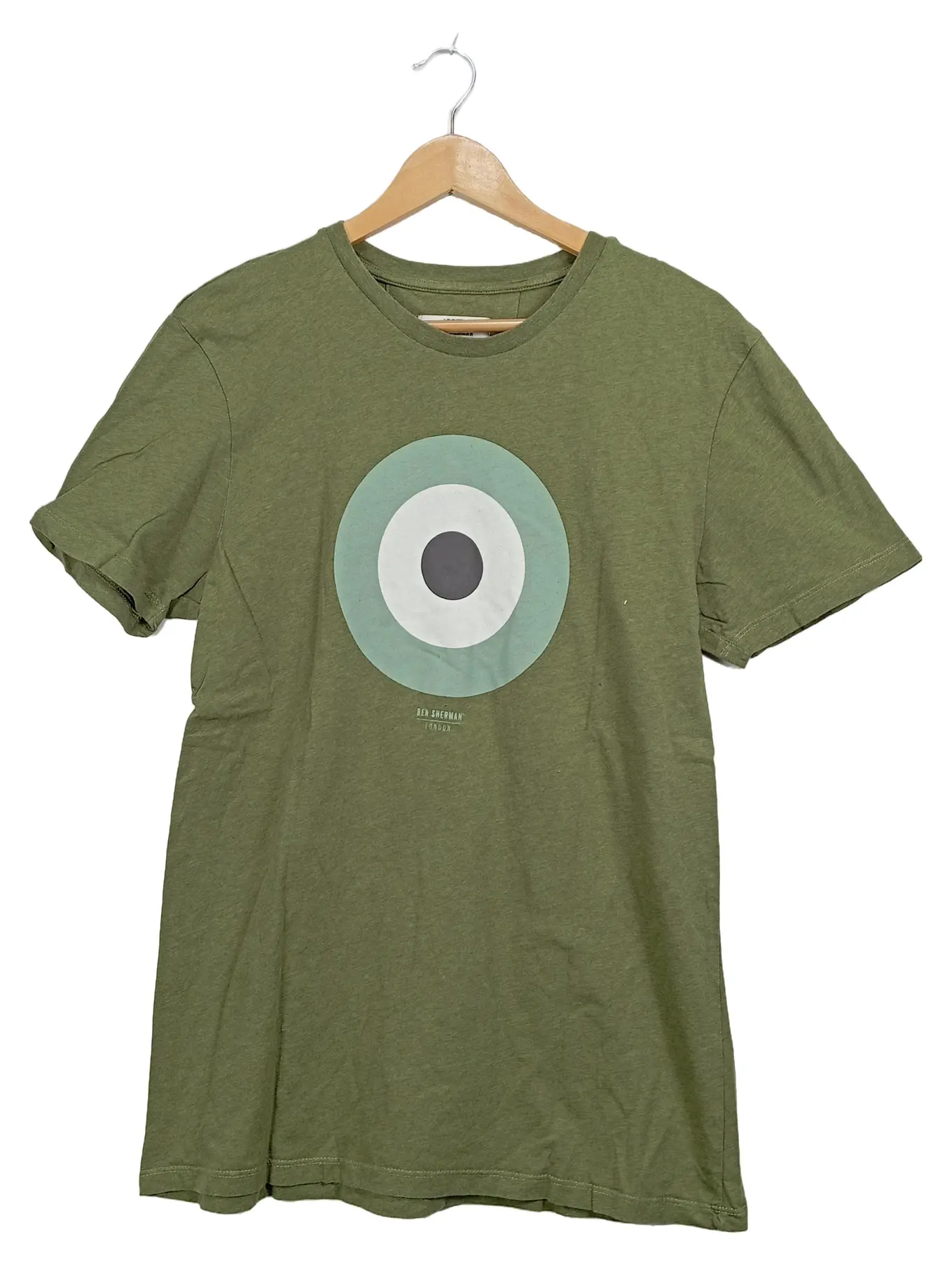 BEN SHERMAN T-Shirt Herren Gr. L Oliv Zielscheibe Target Rundhals Retro