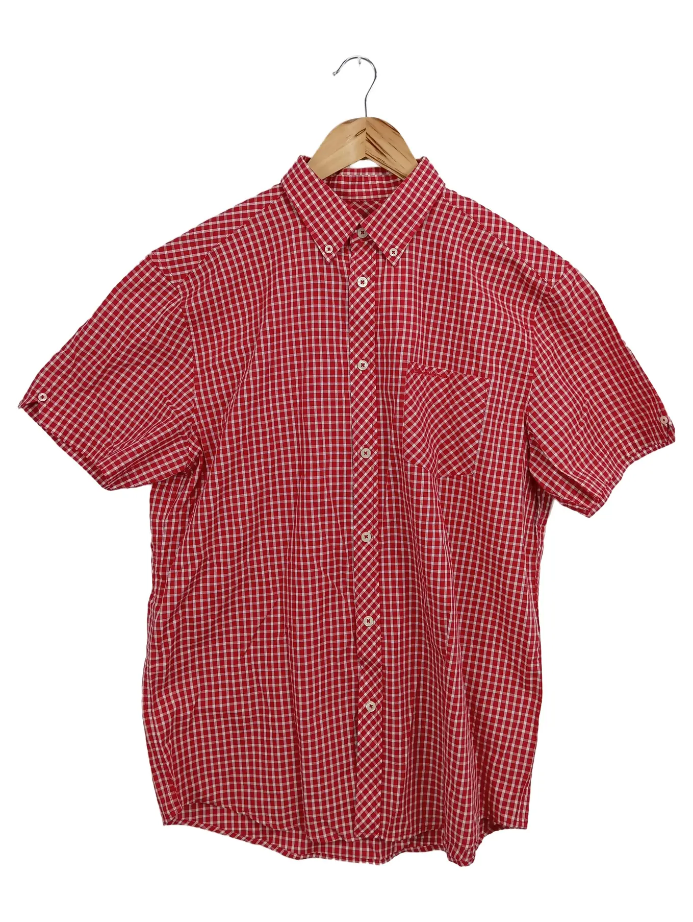 BEN SHERMAN Herren Freizeithemd Kariert Rot Gr. 50/L Kurzarm Casual
