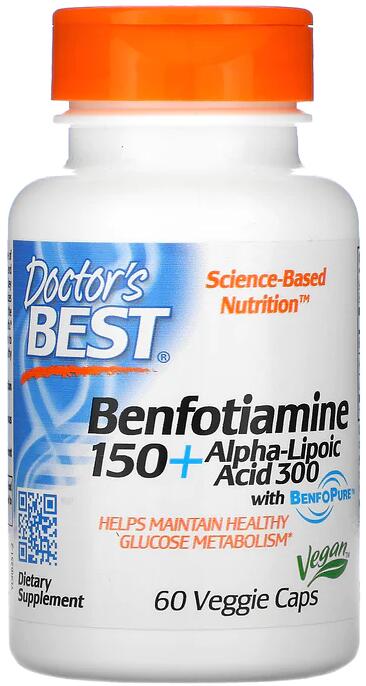 Doctors Best Benfotiamine 150 + Alpha-Lipoic Acid 300, 60 Kapseln