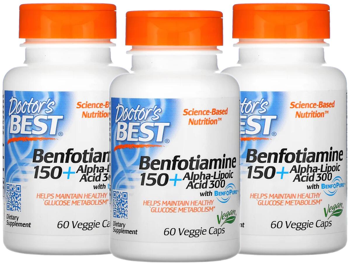 Doctors Best Benfotiamine 150 + Alpha-Lipoic Acid 300, 3 x 60 Kapseln