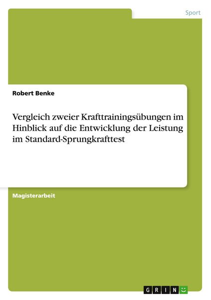 Vergleich zweier Krafttrainingsübungen im Hinblick auf die Entwicklung der Leistung im Standard-Sprungkrafttest, Taschenbuch von Robert Benke, GRIN,