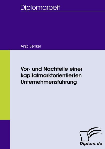 Vor- und Nachteile einer kapitalmarktorientierten Unternehmensführung, Taschenbuch von Anja Benker, Diplomica Verlag GmbH, 9783836658140