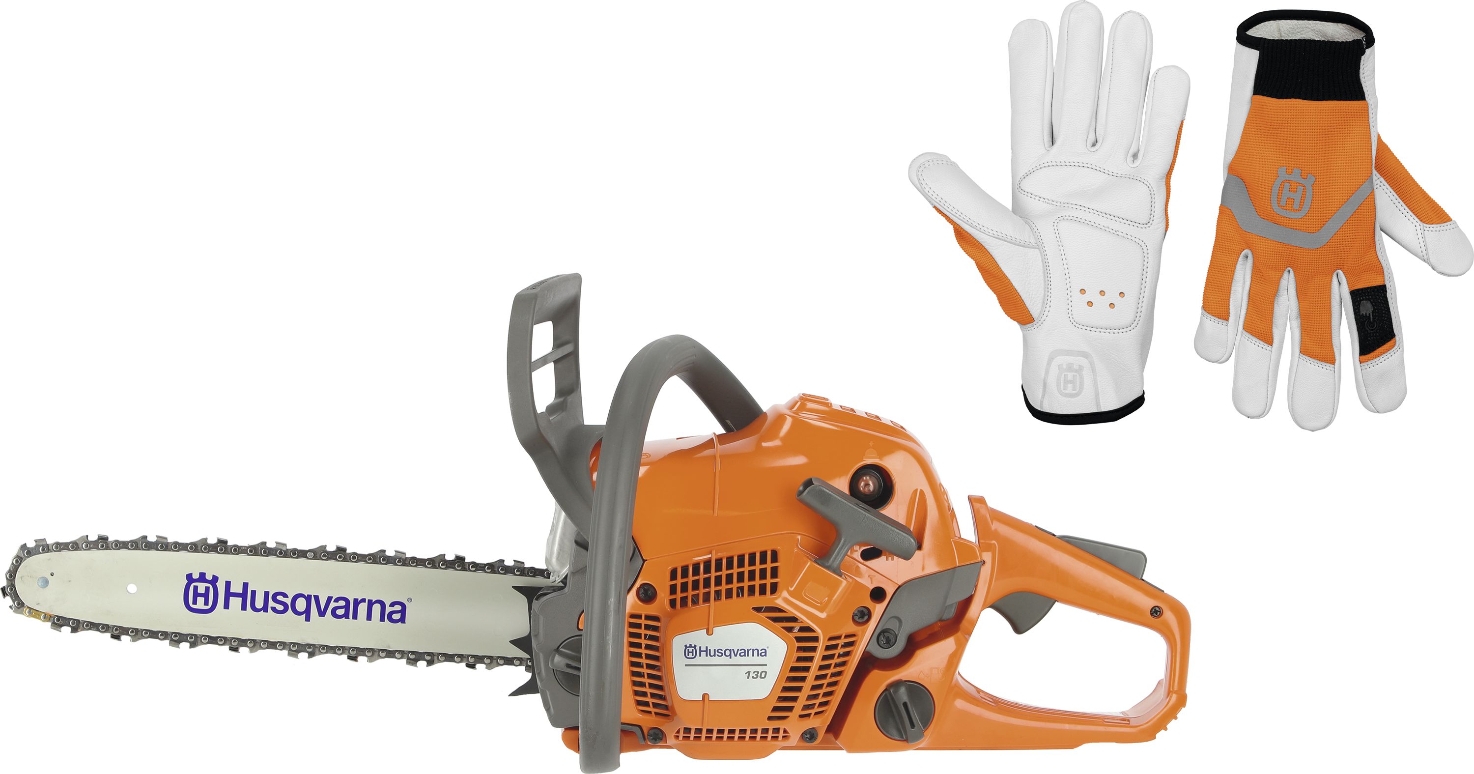 Husqvarna Benzin-Kettensäge "130" 1,5 kW (2,0 PS) Schienenlänge 35 cm, mit 1 Kette, Handschuhen, 9671084-01