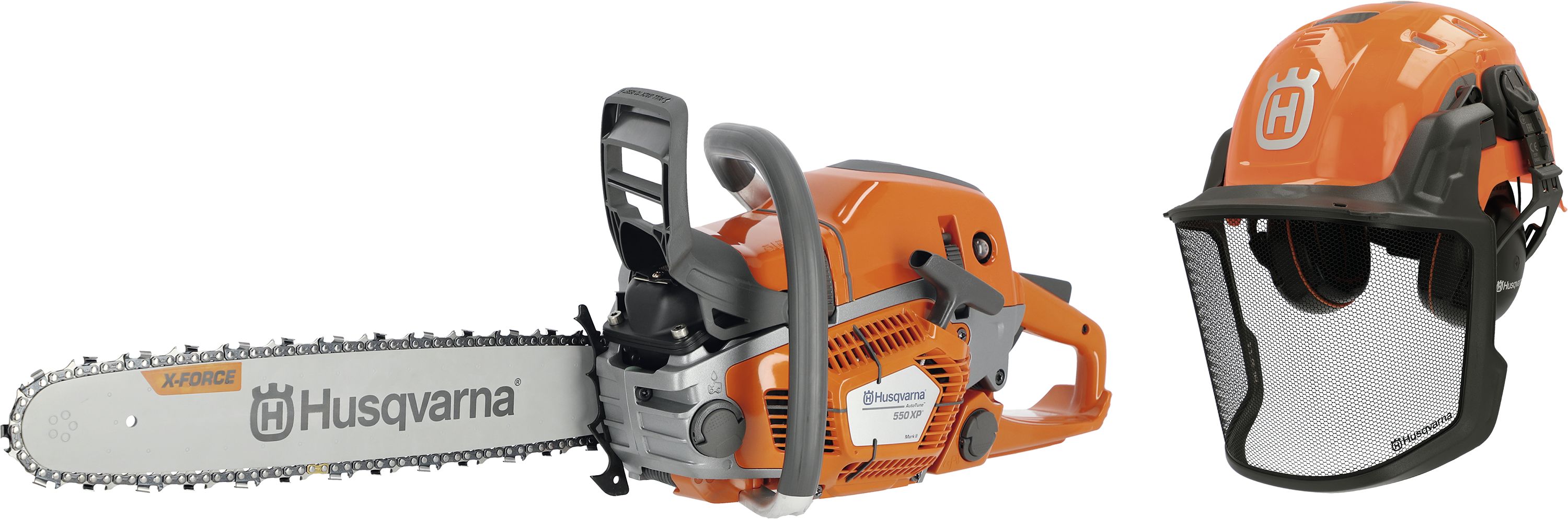 Husqvarna Benzin-Kettensäge "550 XP Mark II" 3,0 kW (4,1 PS) Schienenlänge 45 cm, ohne Griffheizung, mit 1 Kette, Helm, 9676908-38