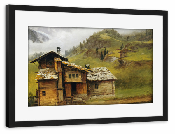 Poster mit Rahmen schwarz "Berghaus von Albert Bierstadt" artboxONE - Architektur,Für Mama,Für Papa