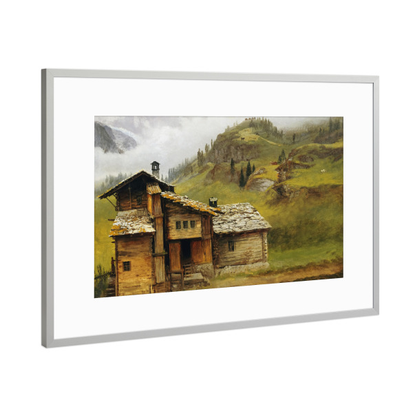 Poster mit Rahmen Silber "Berghaus von Albert Bierstadt" artboxONE - Architektur,Für Mama,Für Papa