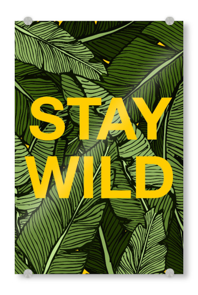 Acrylglasbild "Bleib wild im Dschungel" artboxONE - Typografie,Natur - Bananenblätter,Tropisch,Dschungel,Minimal,Beschriftung,Zitate
