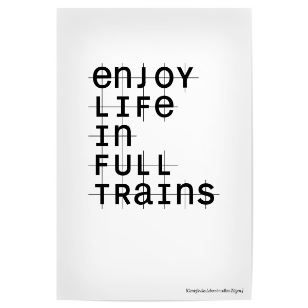 Poster "Full Trains" artboxONE - Typografie,Abstrakt,Schwarzweiß,Geometrie - Raster,Muster,Züge,Beschriftung,Denglisch