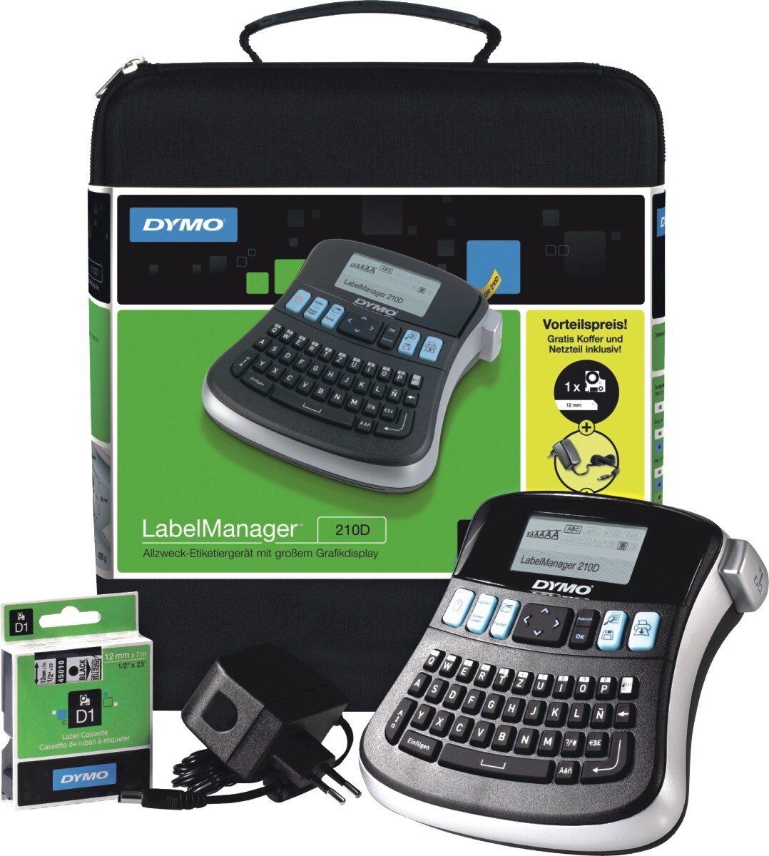 Dymo LabelManager 210D+ im Koffer Beschriftungsgerät, schwarz/silber, mit