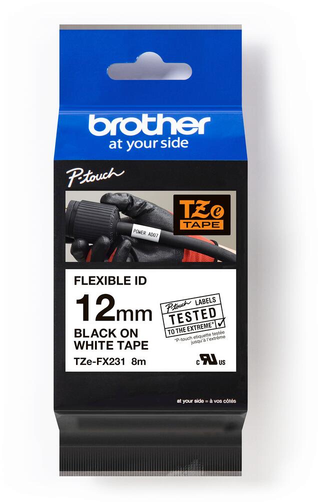 Brother TZe-FX231 Flexi-Tape laminiertes Schriftband für Beschriftungsgeräte, 12mm, 8m, schwarz/weiß