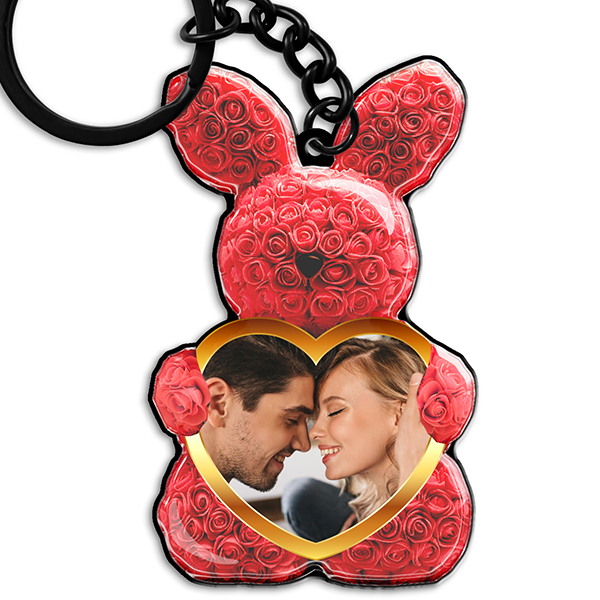 Schlüsselanhänger Hase personalisiert mit Foto – Schlüsselanhänger mit Rosen, süßes Geschenk für Freundin und besondere Anlässe - auto4style