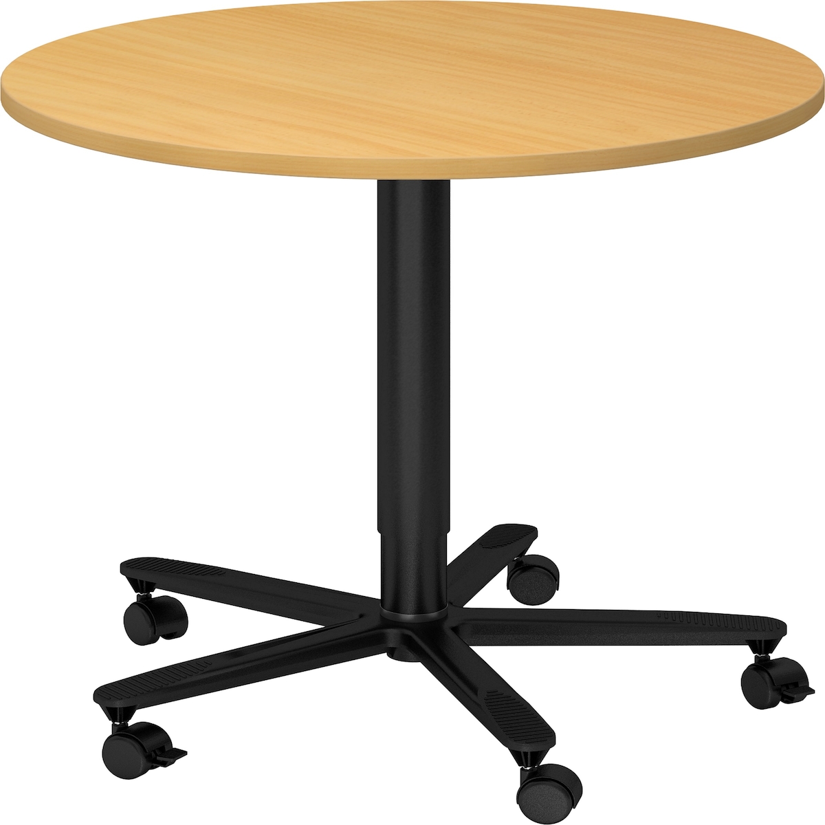 bümö Säulenhubtisch höhenverstellbar, Stehtisch Büro, Bistrotisch rund 80 x 80 cm - Besprechungstisch Buche, Stehtisch Holz-Platte, Säule aus Metall