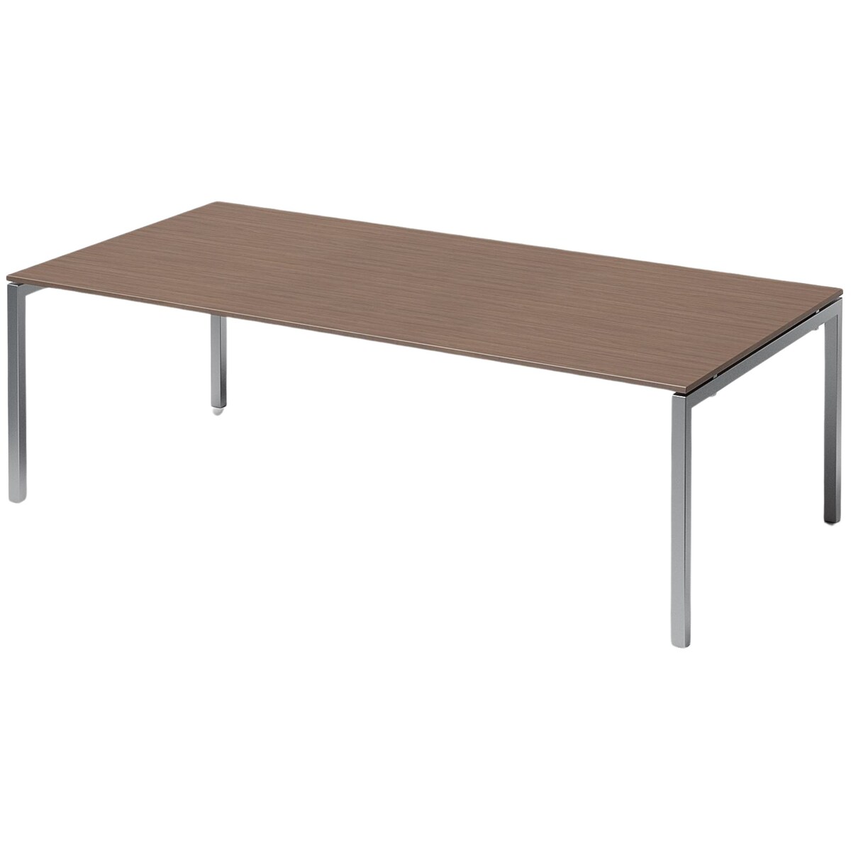 Bisley Cito Konferenztisch höhenverstellbar 240x120 cm, Tischplatte in Nussbaum, U-Gestell in Silber - Besprechungstisch & Meetingtisch, großer Chef
