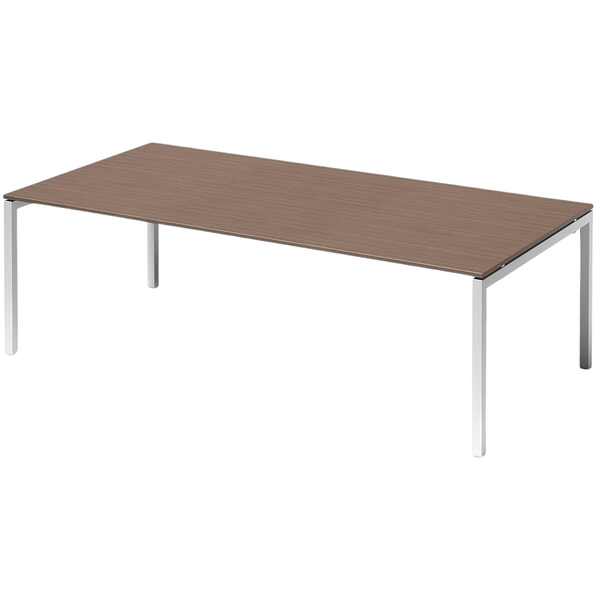 Bisley Cito Konferenztisch höhenverstellbar 240x120 cm, Tischplatte in Nussbaum, U-Gestell in Weiß - Besprechungstisch & Meetingtisch, großer Chef