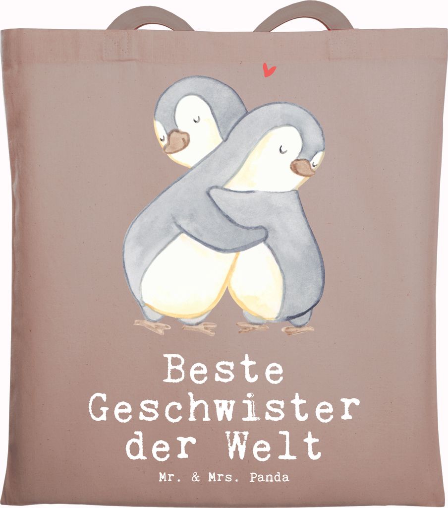 Mr. & Mrs. Panda Schultasche Pinguin Beste Geschwister der Welt - Braun Pastell - Geschenk, Tote Bag, Geburtstag, Brüder, Geschenkidee, Jutebeutel...