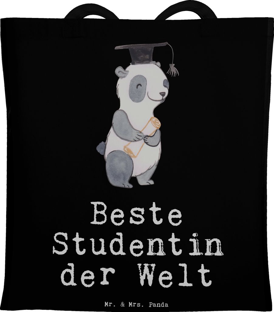 Mr. & Mrs. Panda Tote Bag Pinguin Beste Studentin der Welt - Schwarz - Geschenk, Shopping Tasche, Einkaufstasche, Schultasche, Alumni, Geschenkidee...