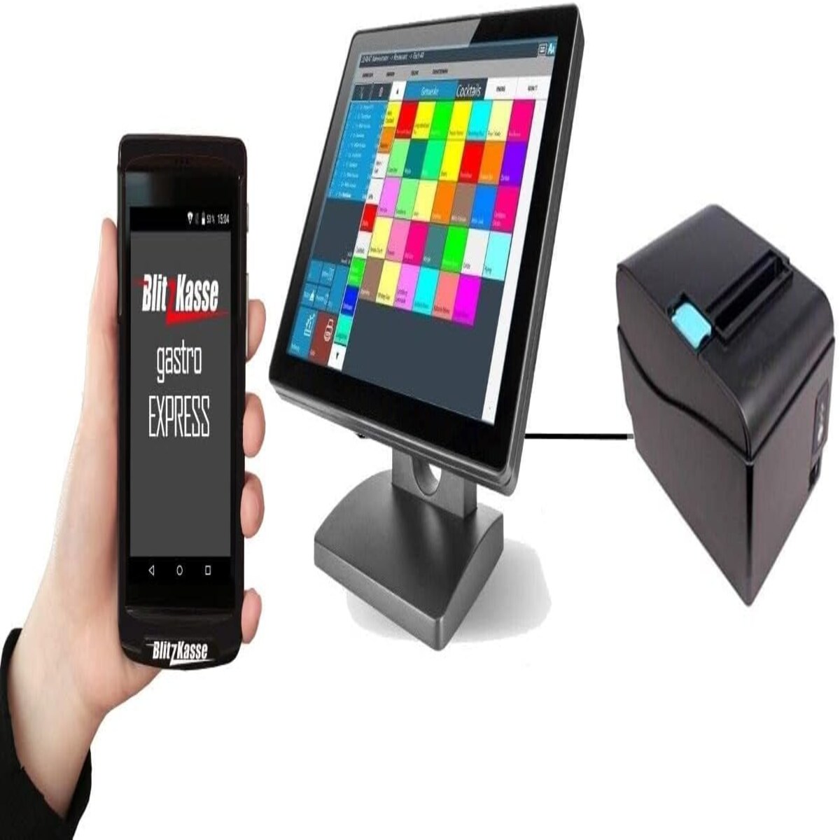 Blitzkasse 15" GASTRO Mehrplatz-Kassensystem mit 7" Bestellterminal, Bondrucker, Hauptkasse für Restaurant, Cafe, Biergarten