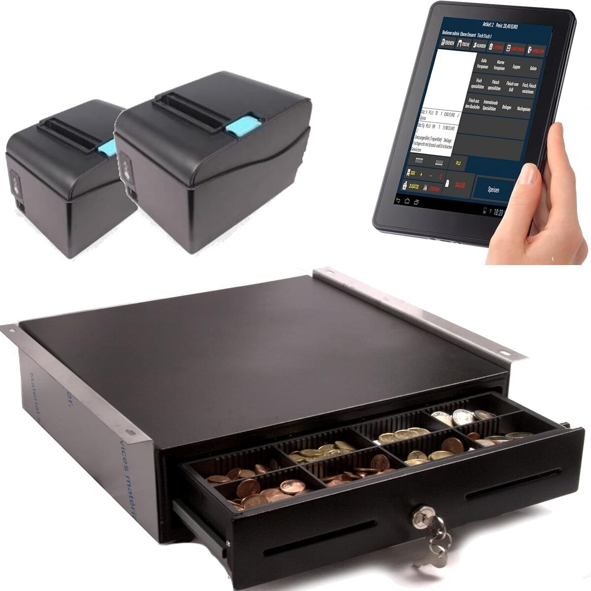 Blitzkasse Mobile Kasse für Gastronomie: 10' Bestellterminal + 2x Bondrucker + Kassenlade
