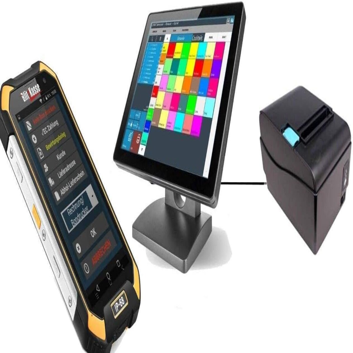 GASTRO Kassensystem mit IP68 5" Bestellterminal (Stoß- und Wasserschutz), Bondrucker, 15" Hauptkasse