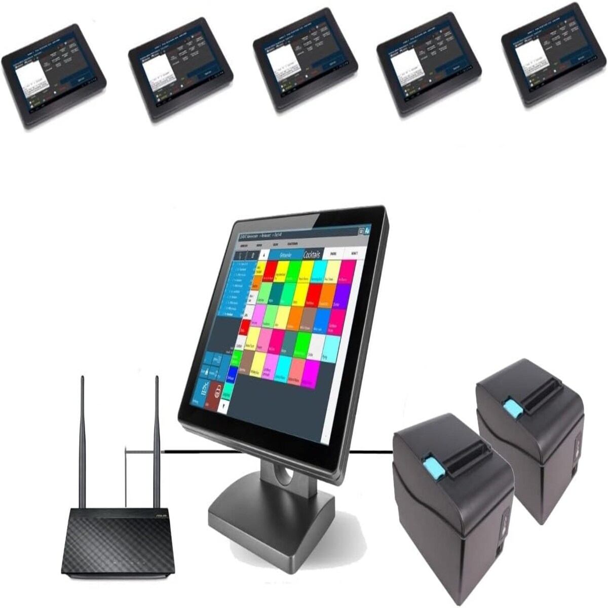 15" GASTRO Mehrplatz-Kassensystem mit 5 x 7" Bestellterminal, Bondrucker, Hauptkasse für Restaurant, Cafe, Biergarten