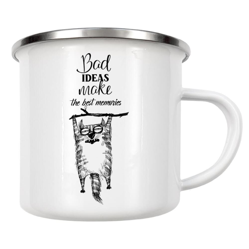 Emaille Tasse "Best ideas make the best memorias" artboxONE - Typografie,Tiere,Schwarzweiß