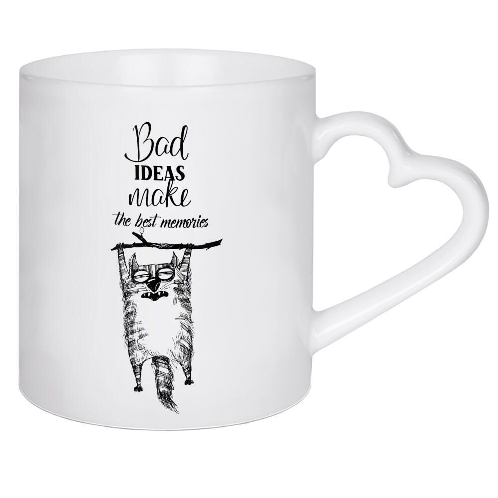 Herztasse "Best ideas make the best memorias" artboxONE - Typografie,Tiere,Schwarzweiß