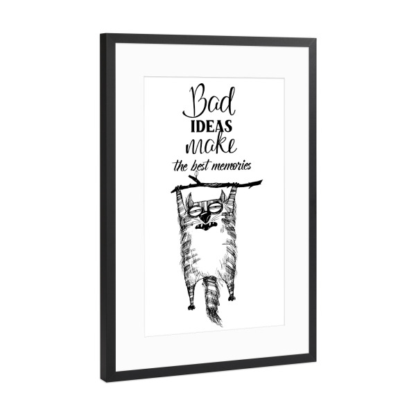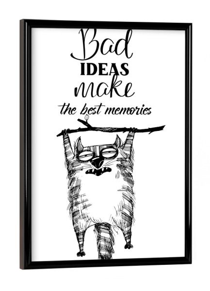 Poster mit schwarzem Rahmen "Best ideas make the best memorias" artboxONE - Typografie,Tiere,Schwarzweiß