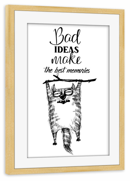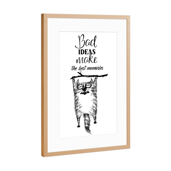 Poster mit Rahmen kiefer "Best ideas make the best memorias" artboxONE - Typografie,Tiere,Schwarzweiß