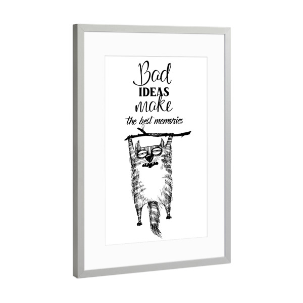 Poster mit Rahmen Silber "Best ideas make the best memorias" artboxONE - Typografie,Tiere,Schwarzweiß